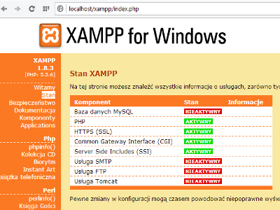 Po zainstalowaniu XAMPP mamy możliwość sprawdzić jego poprawność działania: