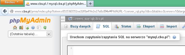 Po zalogowaniu należy kliknąć w zakładkę "SQL"