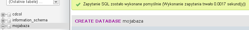 Tworzymy nową bazę za pomocą polecenia:
