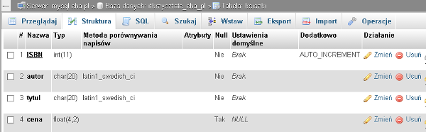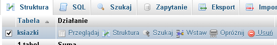 wówczas w zakładce "Struktura" możemy obejrzeć utworzoną tabelę:
