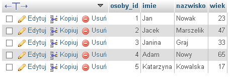 INSERT INTO osoby(imie, nazwisko, wiek) VALUES ('Jan','Nowak','23');