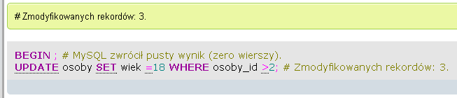 UPDATE osoby SET wiek = 18 WHERE osoby_id > 2;